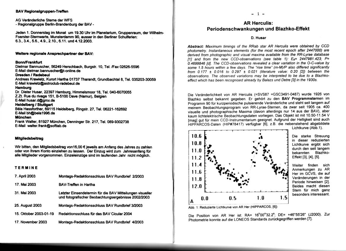 BAV Rundbrief 1/2003 Seite 1