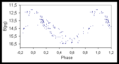 Zur Auswertung dieser Sterne hatte ich Aufnahmen vom 40cm Astrographen der Sternwarte Sonneberg zur Verfügung. Diese Aufnahmen überdecken einen Zeitraum von JD 37000 bis JD 49500. Die Reichweite der Aufnahmen liegt bei 16,5 mag. Mehrere Beobachtungen an einem Tag wurden zu Tagesmittel zusammengefasst. Die Einzelbeobachtungen sind auf Anfrage erhältlich. Die Helligkeiten der Vergleichsterne wurden nach dem USNO - A2.0 Katalog ermittelt.