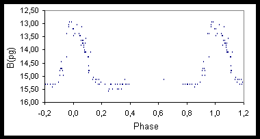 Ich hatte für meine Untersuchungen 219 Aufnahmen zur Verfügung. Die Periode aus dem GCVS ist etwas zu groß. Auch die angegebene Ausgangsepoche passt nicht in meine Beobachtungen. Für die Auswertung habe ich nur meine eigenen Beobachtungen verwendet.