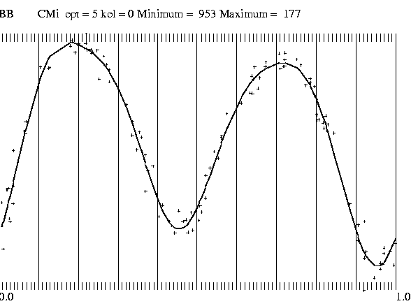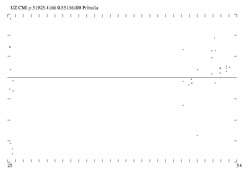 Abb. 2: (B-R)-Werte von UZ CMi mit den Elementen 2451925,4166 + 0,55136108. E, T. Pribulla, von JD 2425 bis 2453. Skalierung der Y-Achse mit 0,01 Tagen.